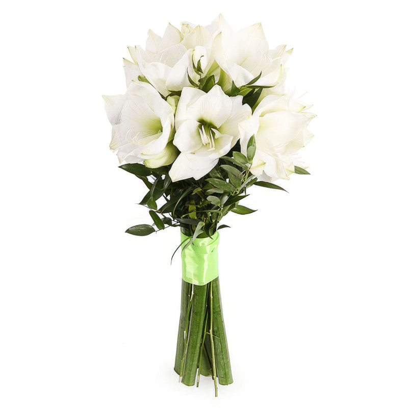 Амариллис белый можно купить в интернет-магазине - kupit-buketu.ru. Только свежие цветы. Уже 30 стилей упаковок. Букеты упаковывают более 50 флористов.