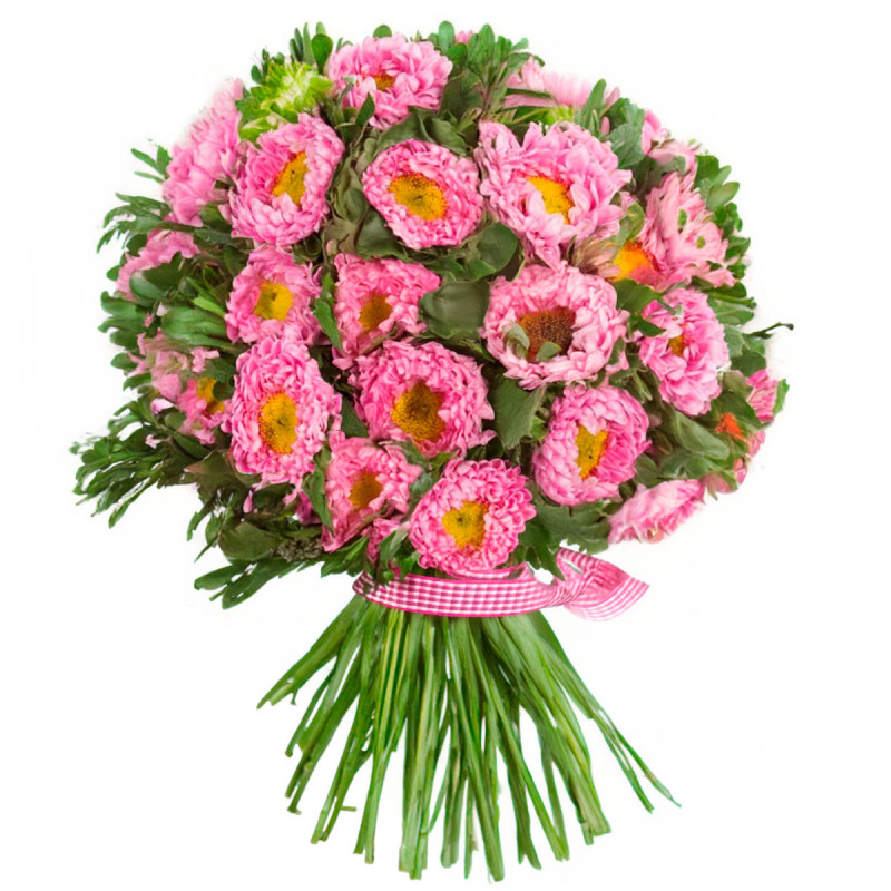 Астра розовая можно купить в интернет-магазине - kupit-buketu.ru. Только свежесрезанные цветы. Уже 50 видов упаковок. Букеты упаковывают более 50 флористов.