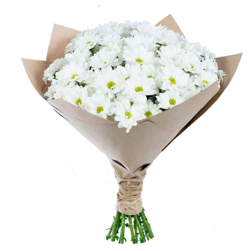 Букет белых хризантем «Снежный» можно купить в интернет-магазине - kupit-buketu.ru. Только свежесрезанные цветы. Свыше 30 вариантов упаковок. Букеты создают более 70 флористов.