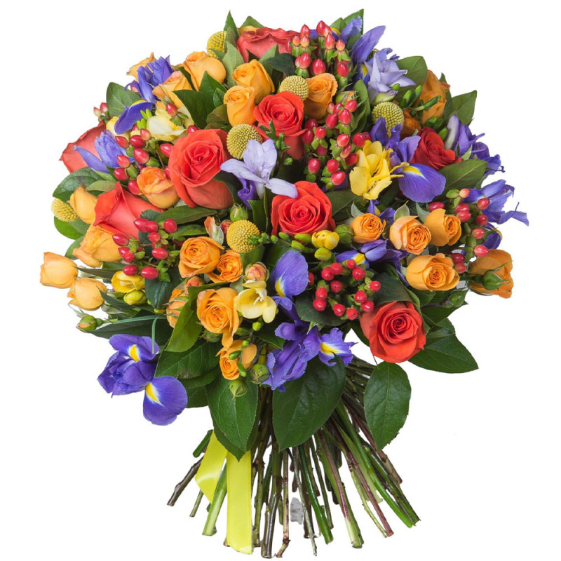 | Состав | Розы, Кустовые розы, Альстромерии, Ирисы, Фрезии |
