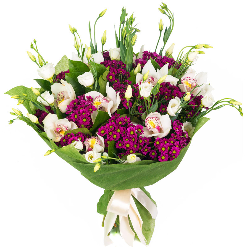 Букет из белых орхидей и эустомы «Орхидейный шарм» можно купить в интернет-магазине - kupit-buketu.ru. Только свежесрезанные цветы. Свыше 50 вариантов упаковок. Букеты формируют более 110 флористов.