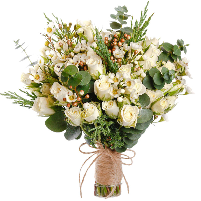 Этот букет создаёт атмосферу нежности с белоснежными оттенками. В составе — ваксфлауэр, белая кустовая роза, эвкалипт, гиперикум и туя. Букет можно упаковать в матовую плёнку, которая подчеркнёт его утончённость. Он наполняет пространство свежестью и станет идеальным подарком на День влюблённых для любимой.