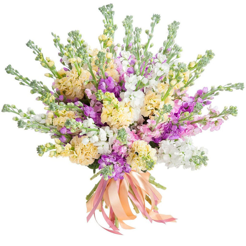Букет из маттиолл микс «Цветочный шедевр» можно купить в интернет-магазине - kupit-buketu.ru. Только молодые цветы. Более 30 стилей упаковок. Букеты оформляют более 100 флористов.