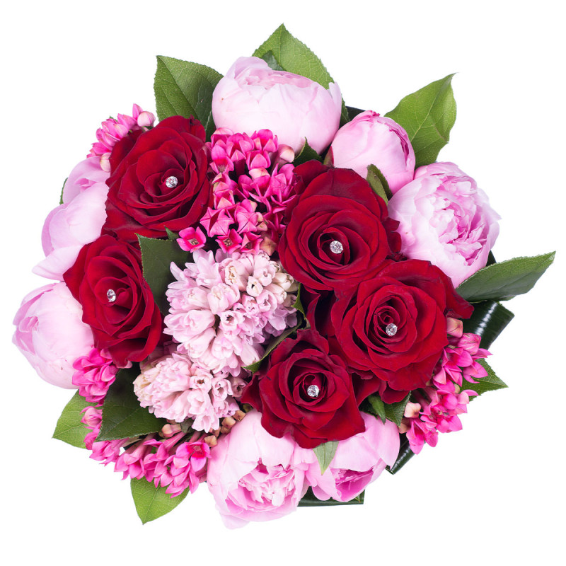 Пион розовый, роза одноголовая крансая, бувардия розовая, аспидистра. Упаковка (лента, пленка, крафт, сетка, пленка матовая)