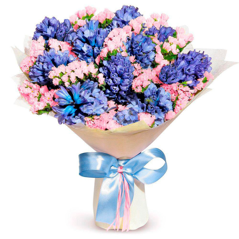 Этот букет удивляет сочетанием глубокого синего и мягкого розового оттенков. В составе гиацинт синий и статица розовая. Упакован в крафт-бумагу с голубой атласной лентой, что придает ему элегантность и шарм. Идеально подходит для создания романтической атмосферы на День Святого Валентина для любимой.