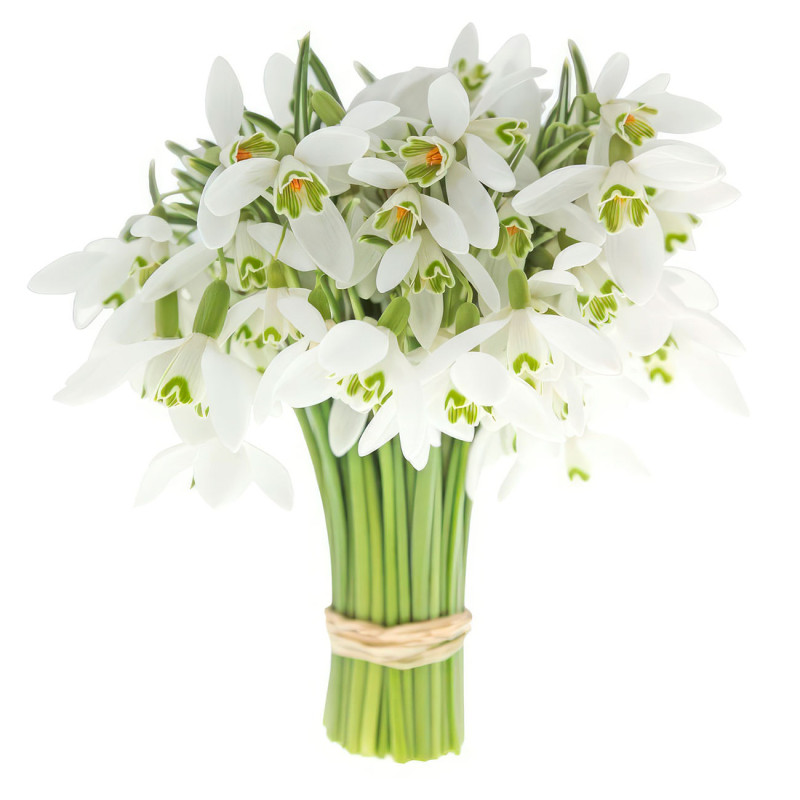Нежные белые подснежники создают атмосферу чистоты и свежести. Букет составлен исключительно из подснежников, подчеркнутых зелеными стеблями. Украшен натуральной лентой, которая гармонично завершает композицию. Этот букет станет прекрасным подарком для любимой женщины на День влюблённых.