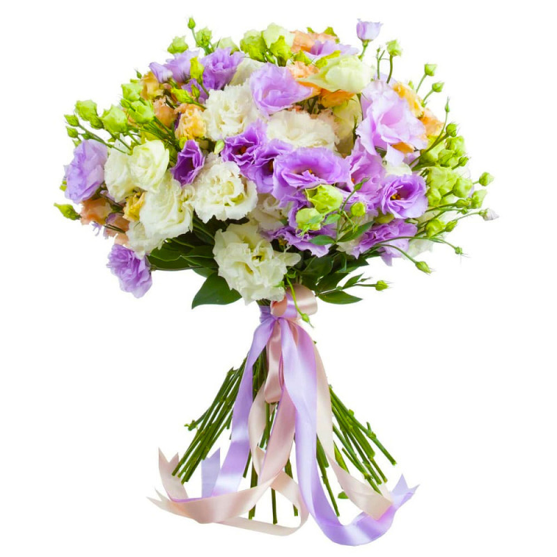 Эустома ассорти из фиолетовой, белой и оранжевой можно купить в интернет-магазине - kupit-buketu.ru. Только свежайшие цветы. Свыше 40 типов упаковок. Букеты оформляют более 110 флористов.