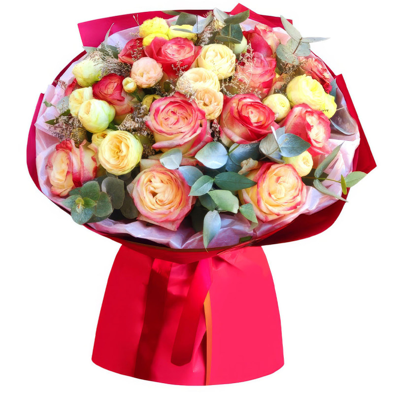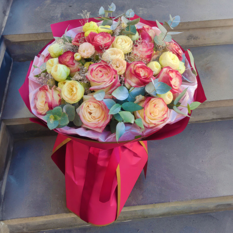 | Состав | Эвкалипт, Розы, Кустовые розы, Пионовидные розы |