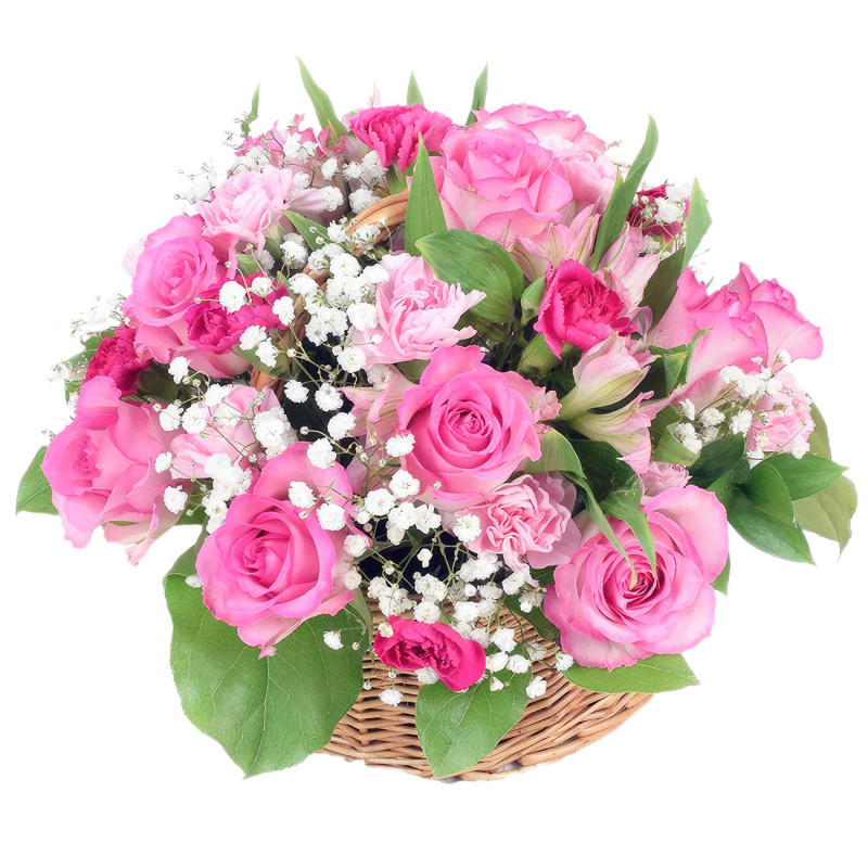 Яркие розовые оттенки роз, диантуса и альстромерии создают атмосферу радости и нежности. В составе букета розовая одноголовая роза, диантус розовый, альстромерия розовая и гипсофила. Все цветы аккуратно уложены в плетёную корзину, создавая гармоничную композицию. Эта корзина подарит улыбку любимой женщине на День Святого Валентина.