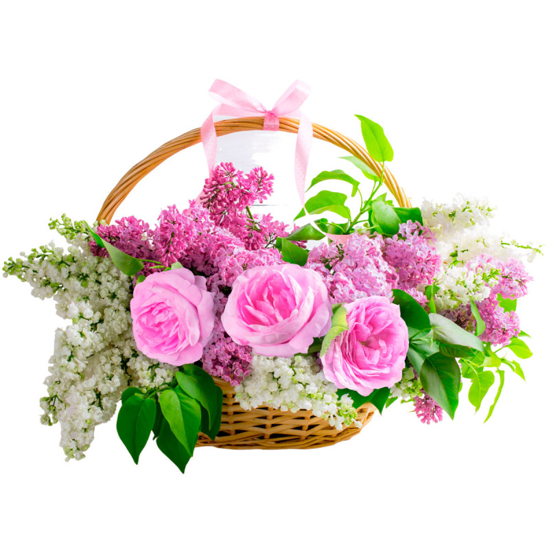 Корзина с розами и сиренью «Нежный рассвет» можно купить в интернет-магазине - kupit-buketu.ru. Только молодые цветы. Уже 40 видов упаковок. Букеты создают более 70 флористов.
