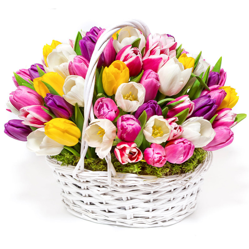Корзина с тюльпанами «Весенний восторг» можно купить в интернет-магазине - kupit-buketu.ru. Только свежие цветы. Более 50 стилей упаковок. Букеты создают более 100 флористов.
