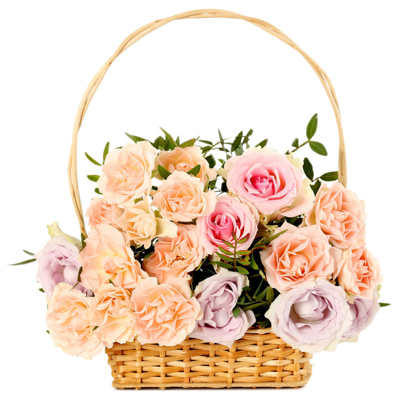 Эта нежная композиция в пастельных тонах создаёт атмосферу лёгкости и утончённости. В корзине собраны розовые, сиреневые и персиковые одноголовые розы, дополненные зеленью фисташки. Плетёная корзина с ручкой подчёркивает природную красоту цветов. Идеальный подарок для племянницы на романтический вечер, который оставит незабываемые впечатления.