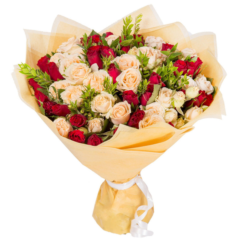 Красивый букет «Чайный закат» можно купить в интернет-магазине - kupit-buketu.ru. Только молодые цветы. Более 30 видов упаковок. Букеты формируют более 90 флористов.