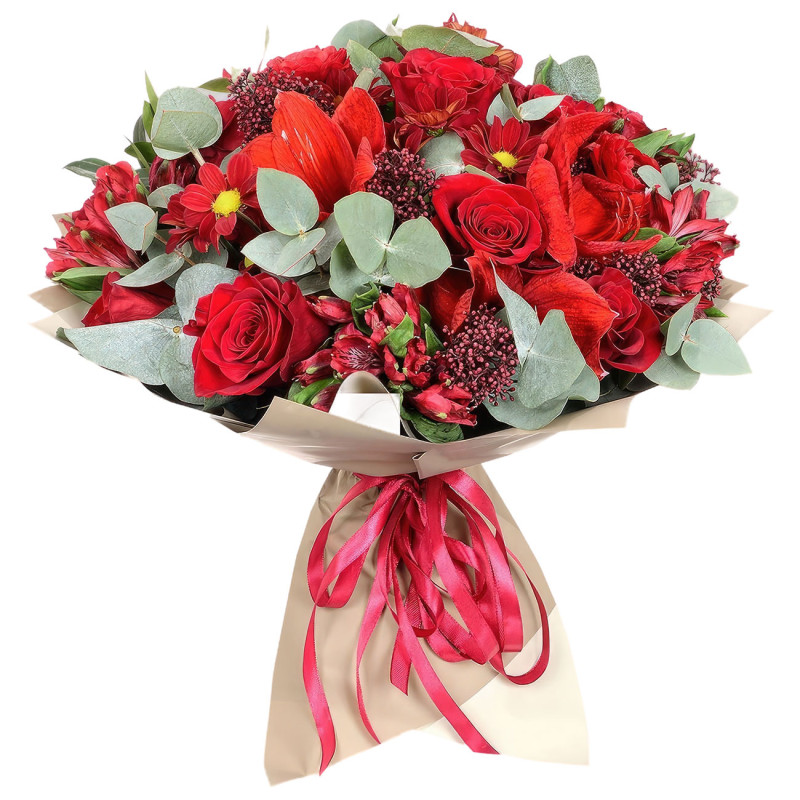 | Состав | Эвкалипт, Розы, Хризантемы, Альстромерии, Амариллисы |