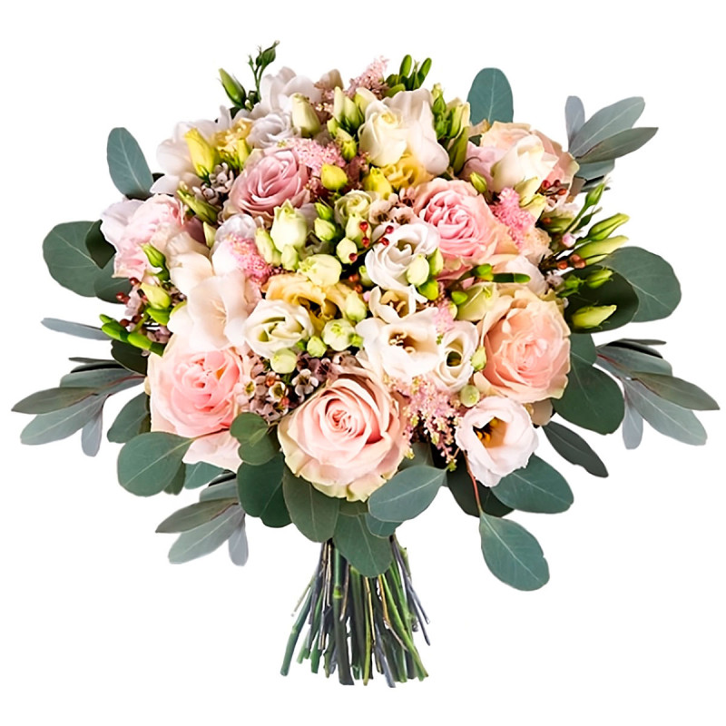 | Состав | Розы, Пионовидные розы, Фрезии, Эустомы |