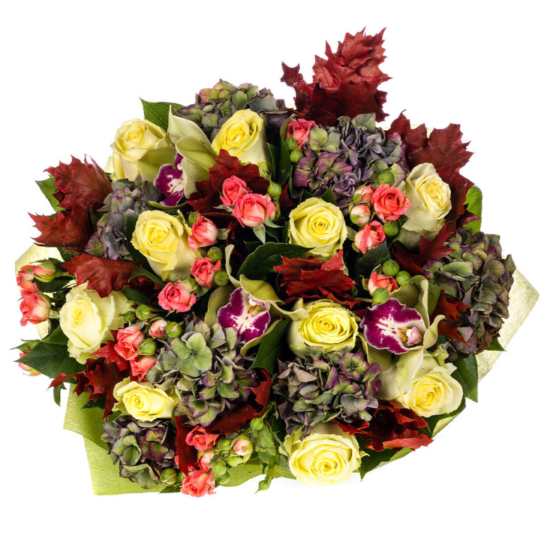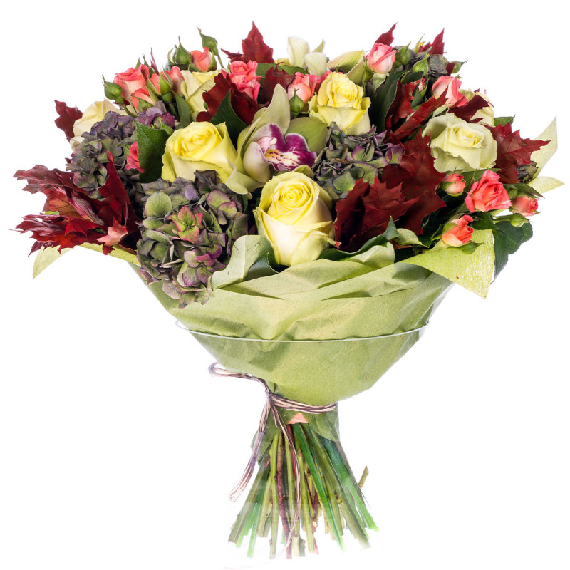 | Состав | Розы, Кустовые розы, Гортензии, Орхидеи |