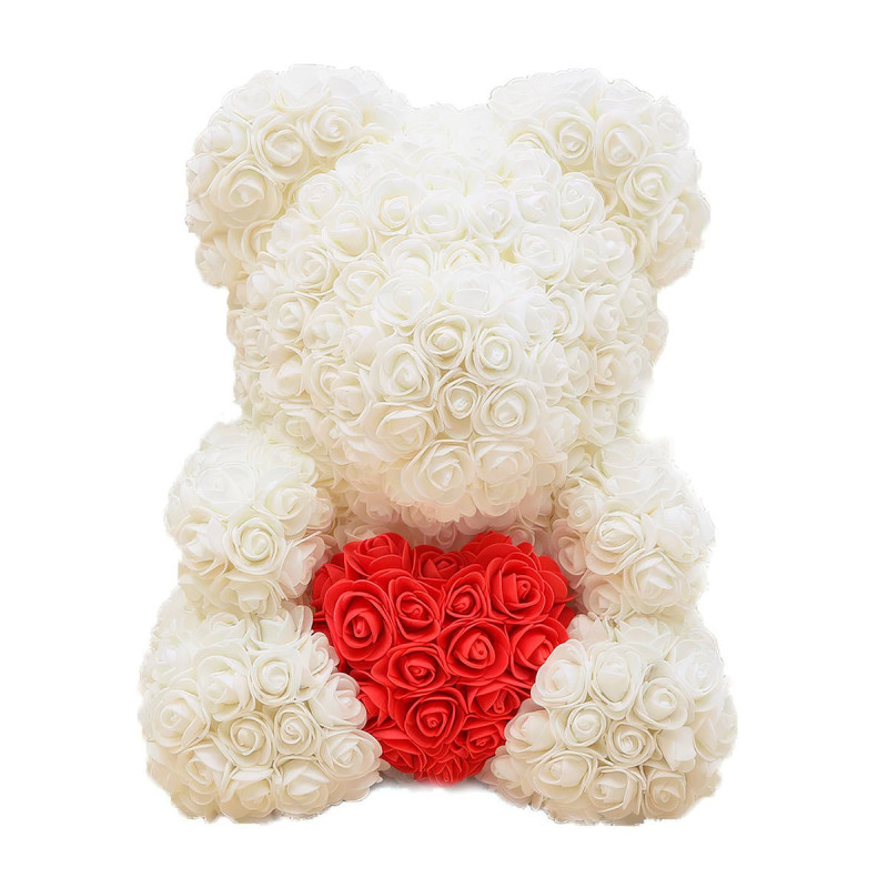 Мишка из роз бежевый с красным сердцем (40 см) можно купить в интернет-магазине - kupit-buketu.ru.