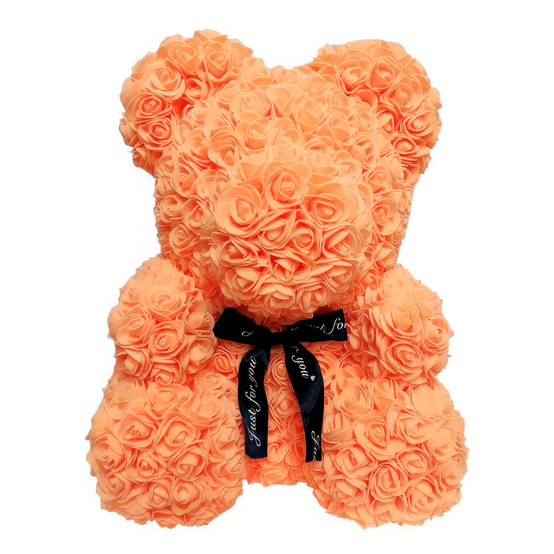 Мишка из роз оранжевый — созданный из более чем 600 великолепных 3D розочек.