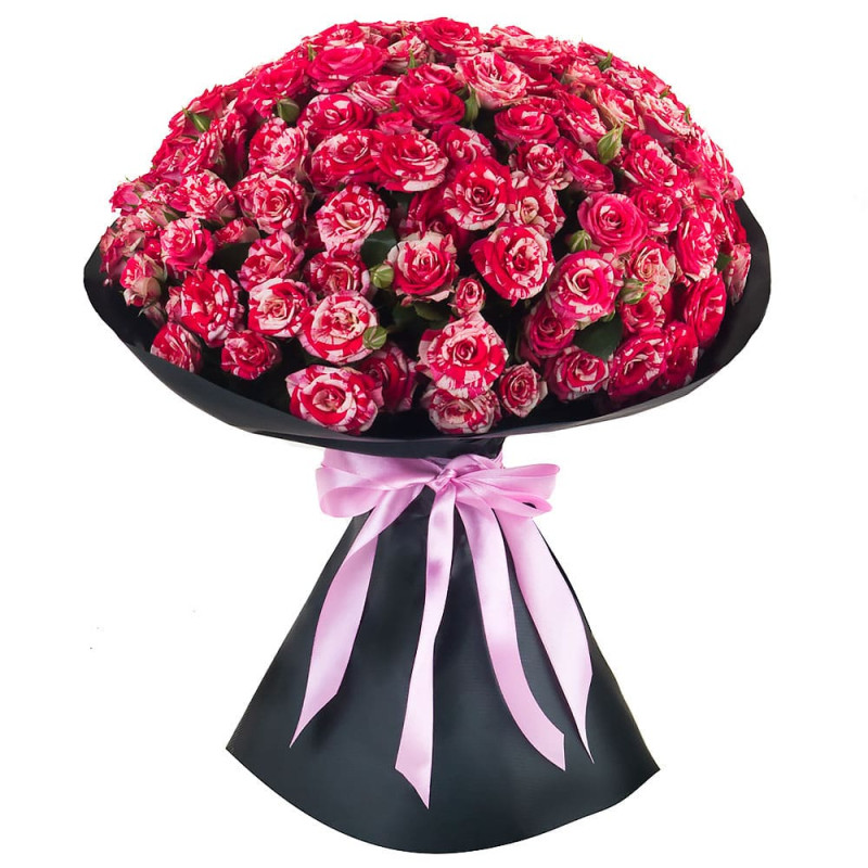 Монобукет из красно-белых кустовых роз «Розовое вдохновение» можно купить в интернет-магазине - kupit-buketu.ru. Только свежайшие цветы. Свыше 40 дизайнов упаковок. Букеты оформляют более 90 флористов.