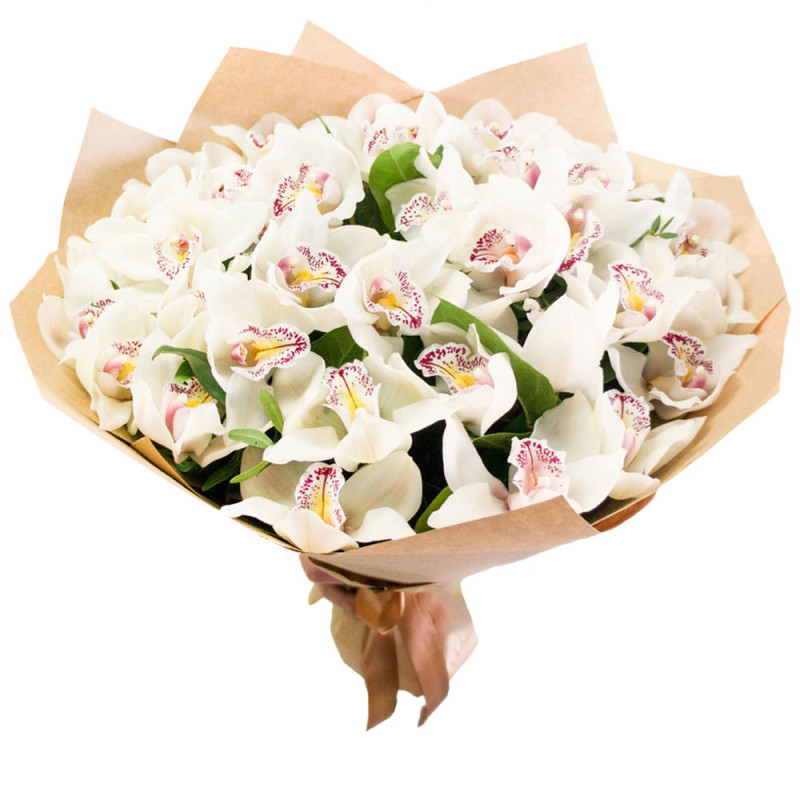 Орхидея белая можно купить в интернет-магазине - kupit-buketu.ru. Только свежие цветы. Уже 30 стилей упаковок. Букеты упаковывают более 50 флористов.