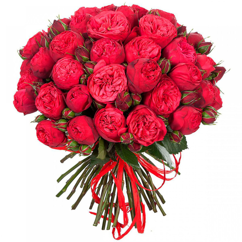 Пионовидная роза кустовая красная можно купить в интернет-магазине - kupit-buketu.ru. Только свежесрезанные цветы. Свыше 40 типов упаковок. Букеты оформляют более 80 флористов.