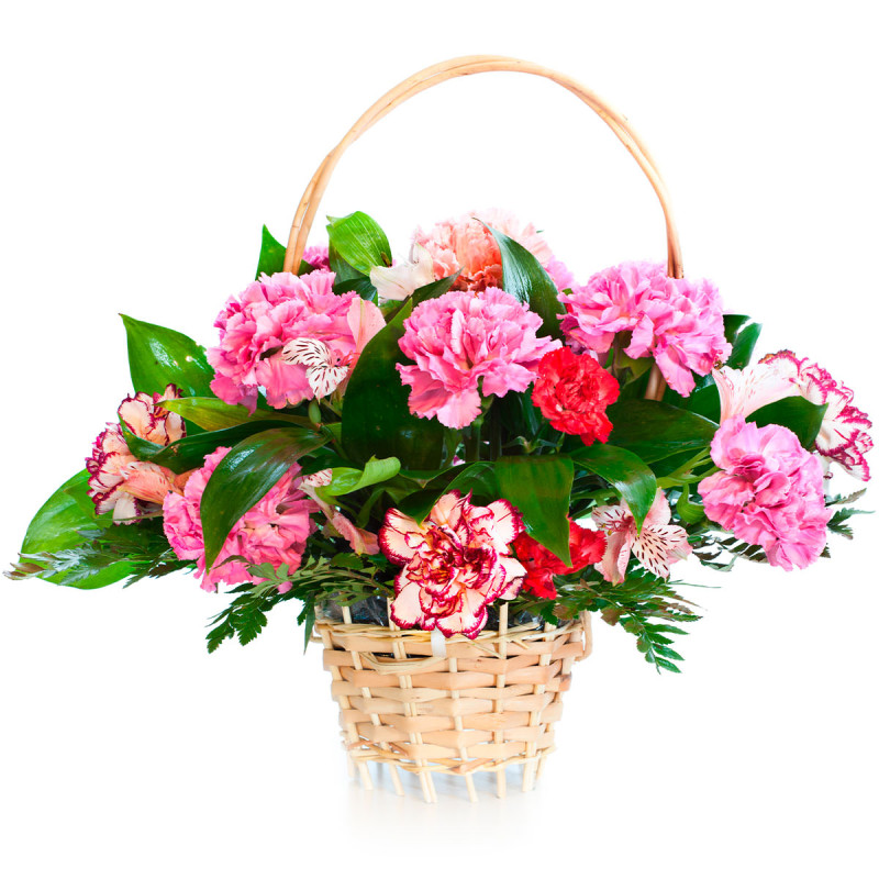 Яркие розовые и красные оттенки гвоздик и альстромерий создают атмосферу теплоты и радости. В составе композиции розовая гвоздика, красная мини-гвоздика, розовая альстромерия и аспидистра. Плетёная корзина добавляет естественности и гармонии. Прекрасно подойдет для поздравления подруги на День матери, создавая уют и праздничное настроение.