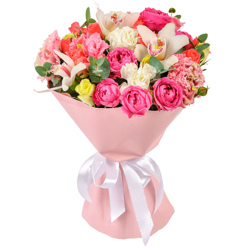 | Состав | Эвкалипт, Розы, Кустовые розы, Орхидеи, Пионовидные розы, Эустомы |