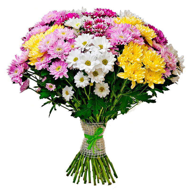 Ромашка ассорти из розовой, белой, желтой и сиреневой можно купить в интернет-магазине - kupit-buketu.ru. Только свежесрезанные цветы. Свыше 40 вариантов упаковок. Букеты упаковывают более 60 флористов.
