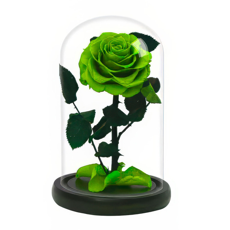 Стабилизированная вечная роза в колбе светло-зеленая.