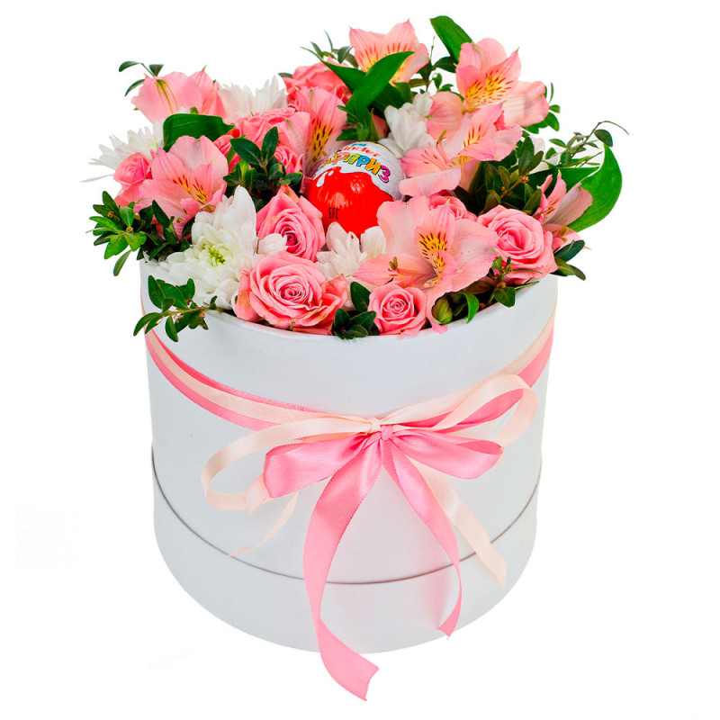 Этот букет создаёт атмосферу нежности и романтики, благодаря розовым кустовым розам и альстромериям, дополненным белыми хризантемами. Композиция оформлена в белой шляпной коробке с розовой лентой, которая подчёркивает изящество цветов. Букет придаёт праздничное настроение и станет отличным подарком для возлюбленного на 14 Февраля.