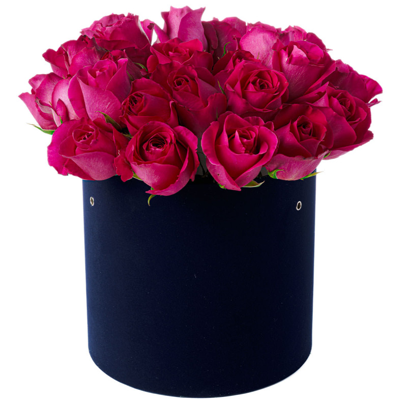 Эта композиция из ярких розовых роз дарит чувство восхищения и романтики. Роза одноголовая розовая собрана в стильной шляпной коробке глубокого синего цвета. Создает атмосферу утонченной элегантности. Порадует любимую женщину на романтический вечер.