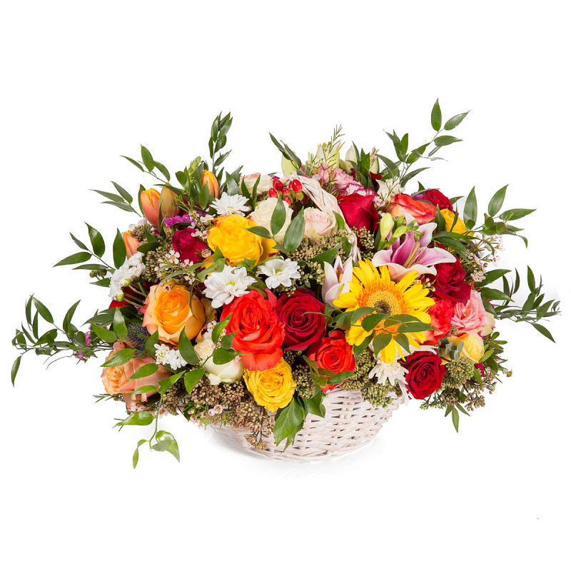 Цветочная композиция в корзине «Солнечный каприз» можно купить в интернет-магазине - kupit-buketu.ru. Только свежайшие цветы. Свыше 40 дизайнов упаковок. Букеты оформляют более 70 флористов.