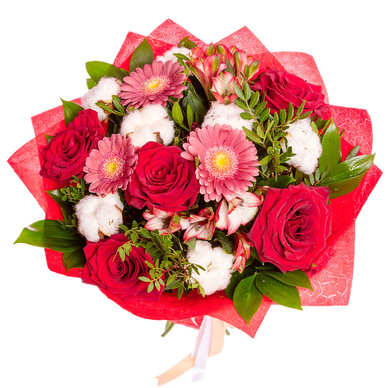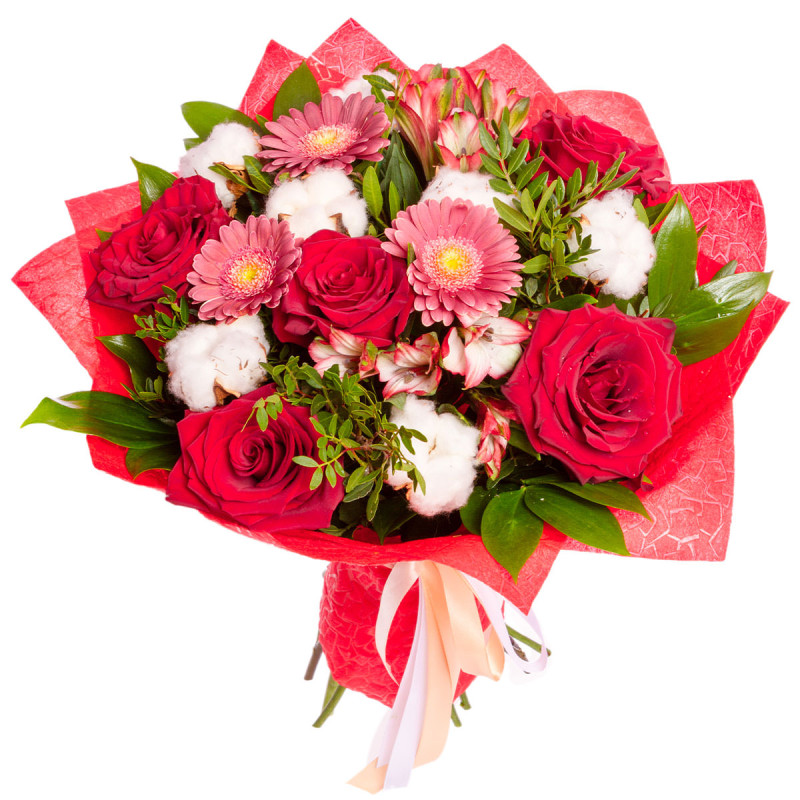 | Состав | Хлопок, Розы, Герберы, Альстромерии |