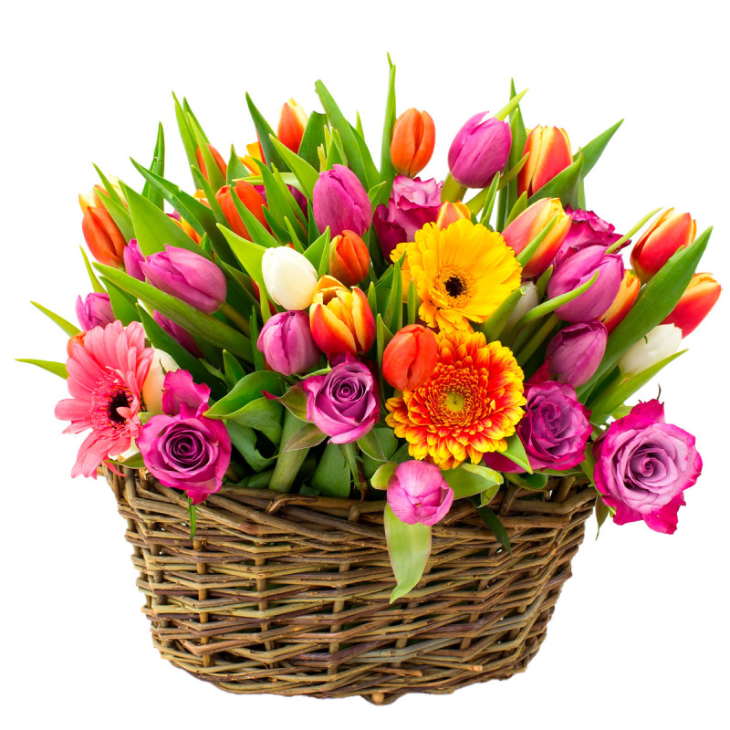 Цветы в корзине живые «Солнечный радуж» можно купить в интернет-магазине - kupit-buketu.ru. Только свежайшие цветы. Свыше 40 дизайнов упаковок. Букеты оформляют более 70 флористов.
