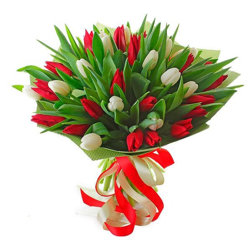 Тюльпан ассорти из белого и красного можно купить в интернет-магазине - kupit-buketu.ru. Только молодые цветы. Более 30 вариантов упаковок. Букеты оформляют более 80 флористов.